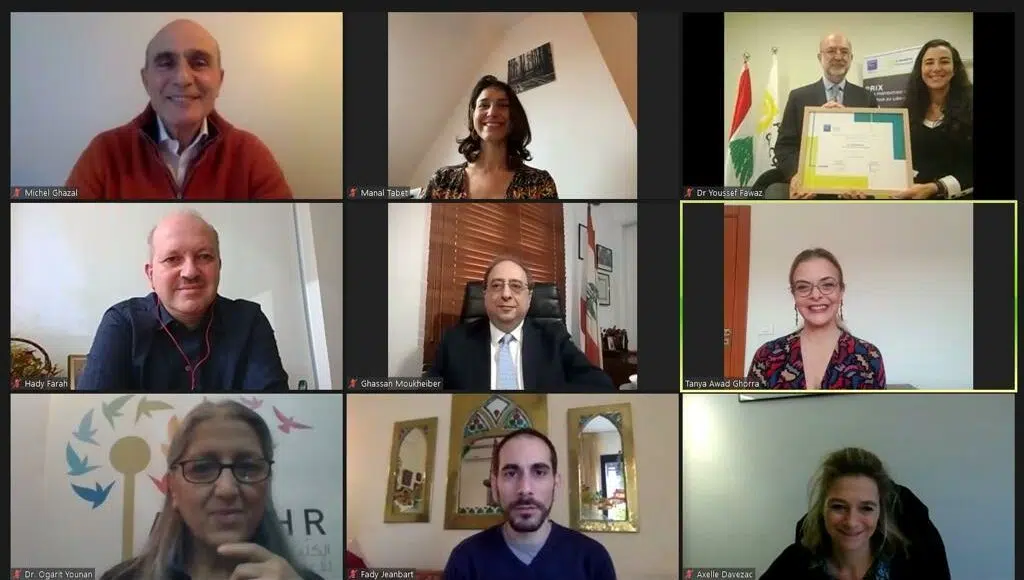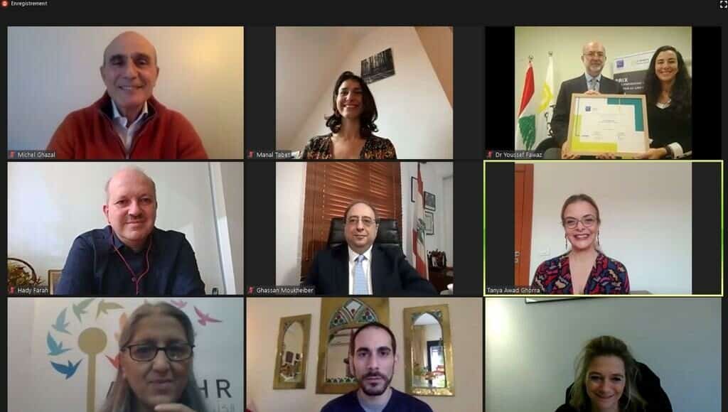 Au nom de M. Ghazal Président de la Fondation Ghazal pour l’éducation, la Recherche et la Paix au Liban et au nom d’Axelle Davezac, Directrice Générale de la Fondation de France, Rima Ghazal a remis le Prix au Dr Youssef Fawaz, Directeur Exécutif de Al Majmoua. La cérémonie s’est enfin clôturée sur une note d’espoir pour le Liban, avec le Groupe LeBAM qui a interprété la chanson de Zaki Nassif, Mahma ma yitjarrah baladna (aussi meurtri que soit notre pays).
