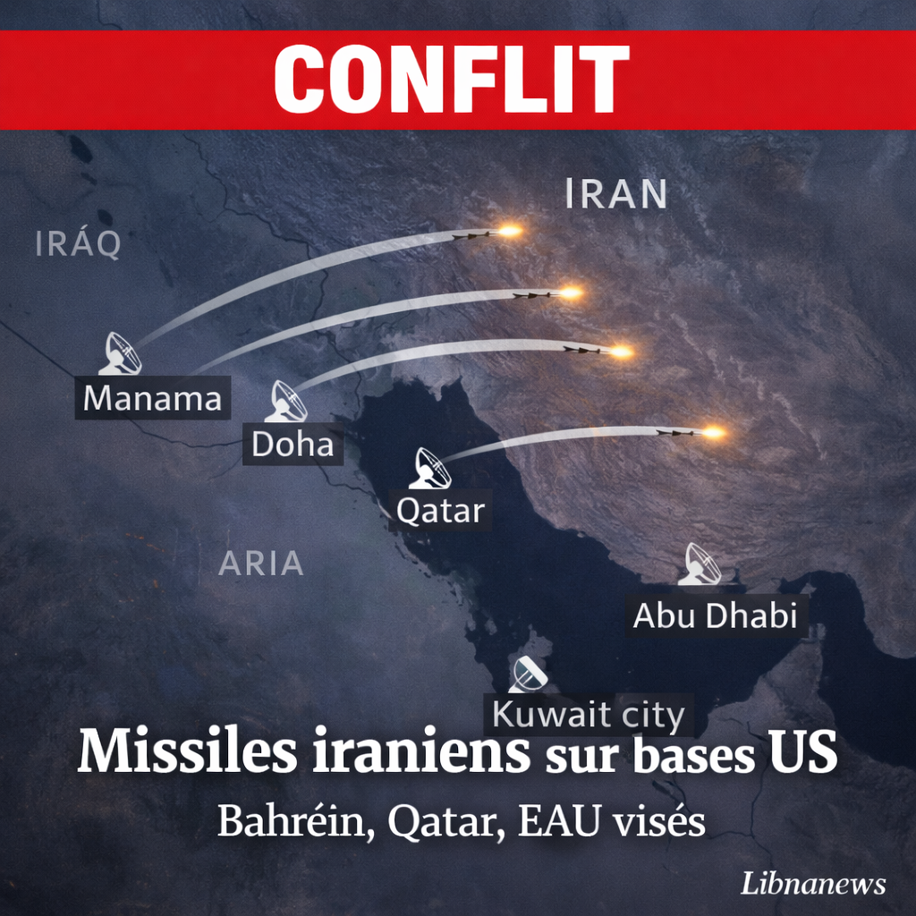 Les tensions au Moyen-Orient ont franchi un nouveau seuil ce samedi 28 février 2026 avec une série de frappes iraniennes sur des installations militaires américaines dans le Golfe Persique. Des missiles balistiques ont été lancés depuis le territoire iranien, ciblant notamment la base navale de la Cinquième flotte américaine à Bahreïn, la base aérienne d’Al Udeid au Qatar, ainsi que des sites aux Émirats arabes unis et au Koweït. Ces attaques, survenues moins de deux heures après les premières explosions rapportées à Téhéran suite aux frappes israélo-américaines, marquent une riposte directe de Téhéran contre les intérêts américains dans la région. Selon des sources officielles qatariennes, un missile a été intercepté par le système de défense Patriot, tandis que des explosions ont été signalées à Manama, Abou Dhabi et dans d’autres zones stratégiques.