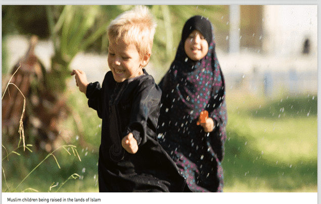 En outre, l’image de l’enfant est souvent associée à d’autres représentant le printemps, symbole d’une fertilité, de vie exubérante et d’élan débordant. On les voit souriant, jouant dans des parcs et jardins, sur les bancs de l’école, ou encore dans des soirées animées. Cette image sert aussi à renforcer l’aspect « festif » de la guerre, selon l’expression de Farhad Khosrokavar[4]. Ainsi, cette dernière vient donc s’ajouter à d’autres plus « gaies » et « cool » de la vie sur le territoire putatif du califat telles que des grandes villas avec des piscines voire même des palais, des centres commerciaux et des complexes éducatifs, sportifs, médicaux et académiques offerts à la jouissance des « lionceaux du califat » et de leurs aînés. Ce projet de vie (et de mort) alternatif doit répondre aux exigences des adultes qui cherchent un nouveau départ pour eux et leurs familles.