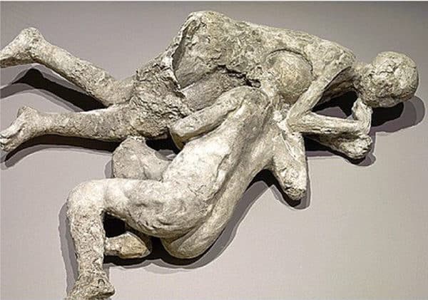 À l’époque romaine, la représentation de l’homosexualité s’est développée surtout dans la statuaire. Nous pouvons citer comme exemple, Antinus, « amoureux » de l’Empereur Hadrien, a fait l’objet d’un culte et de nombreuses représentations. On retrouve aussi un goût pour le thème de l’hermaphrodite. À Pompéi et Herculanum, nous assistons à un engouement pour illustrer le sexe masculin (souvent démesuré). On le retrouve partout : fresques, lampes à huile, peinture à l’intérieur des maisons, lupanars, etc. Rarement dévoilés au public, « les deux amants de Pompéi » étaient depuis longtemps les acteurs les plus fascinants de l’histoire de de l’enfer Pompéi. Le scientifique Vittorio Spinazzola, imaginait l’étreinte désespérée d’une mère pour protéger sa fille. Mais les résultats récentes d’analyses génétiques réalisées à partir des restes organiques emprisonnés dans le moulage a permis de déterminer qu’il s’agissait de deux hommes, dont l’âge a été estimé entre 18 et 20 ans.