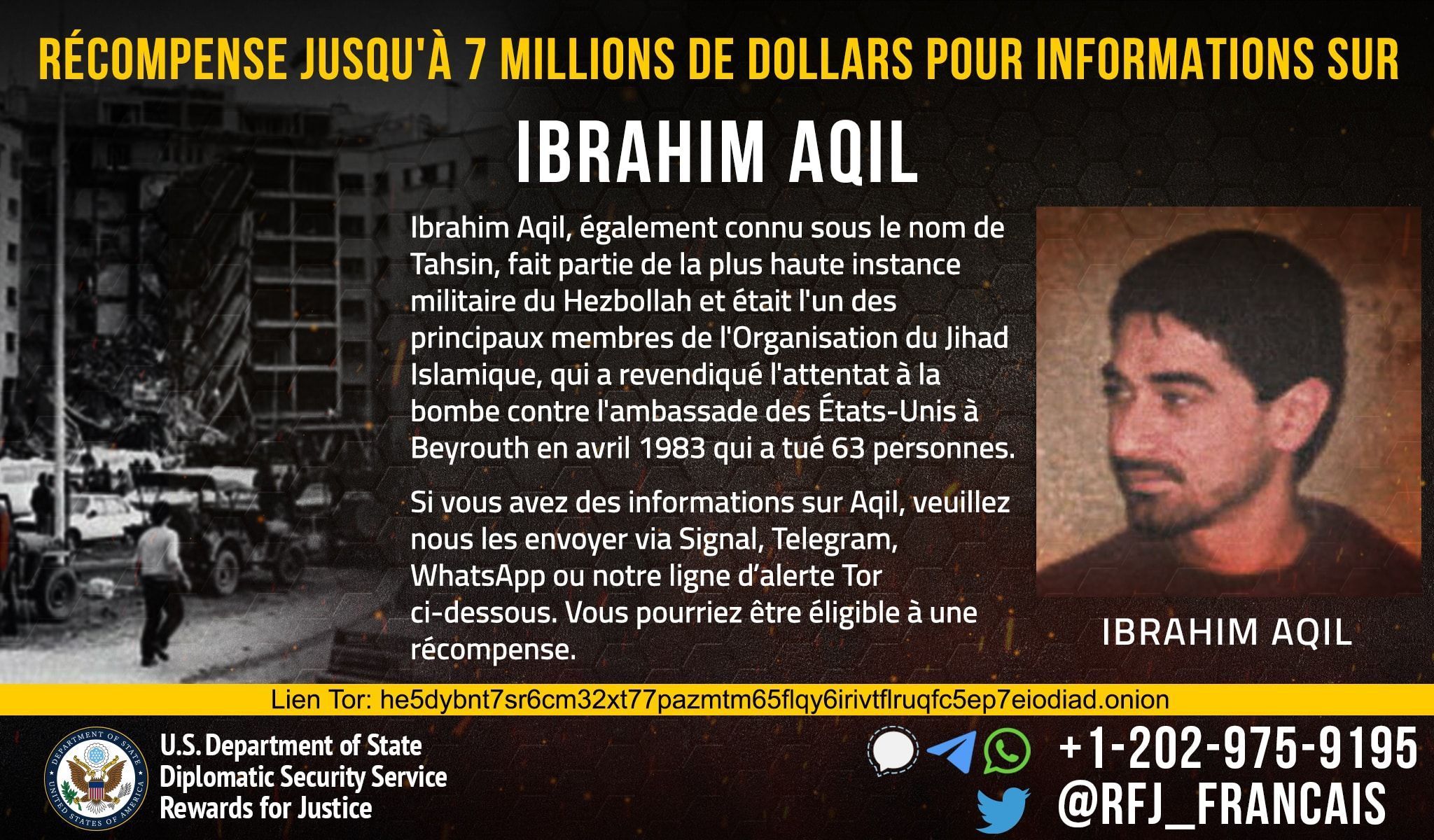 Aqil est aussi connu pour son rôle dans la planification d’attentats internationaux, notamment le bombardement de l’ambassade israélienne à Buenos Aires en 1992. Sa capacité à rester discret et à échapper à la capture lui a valu le surnom de « Le Fantôme » au sein de l’organisation. Il est actuellement ciblé par les agences de renseignement internationales et reste une menace importante pour la sécurité régionale.