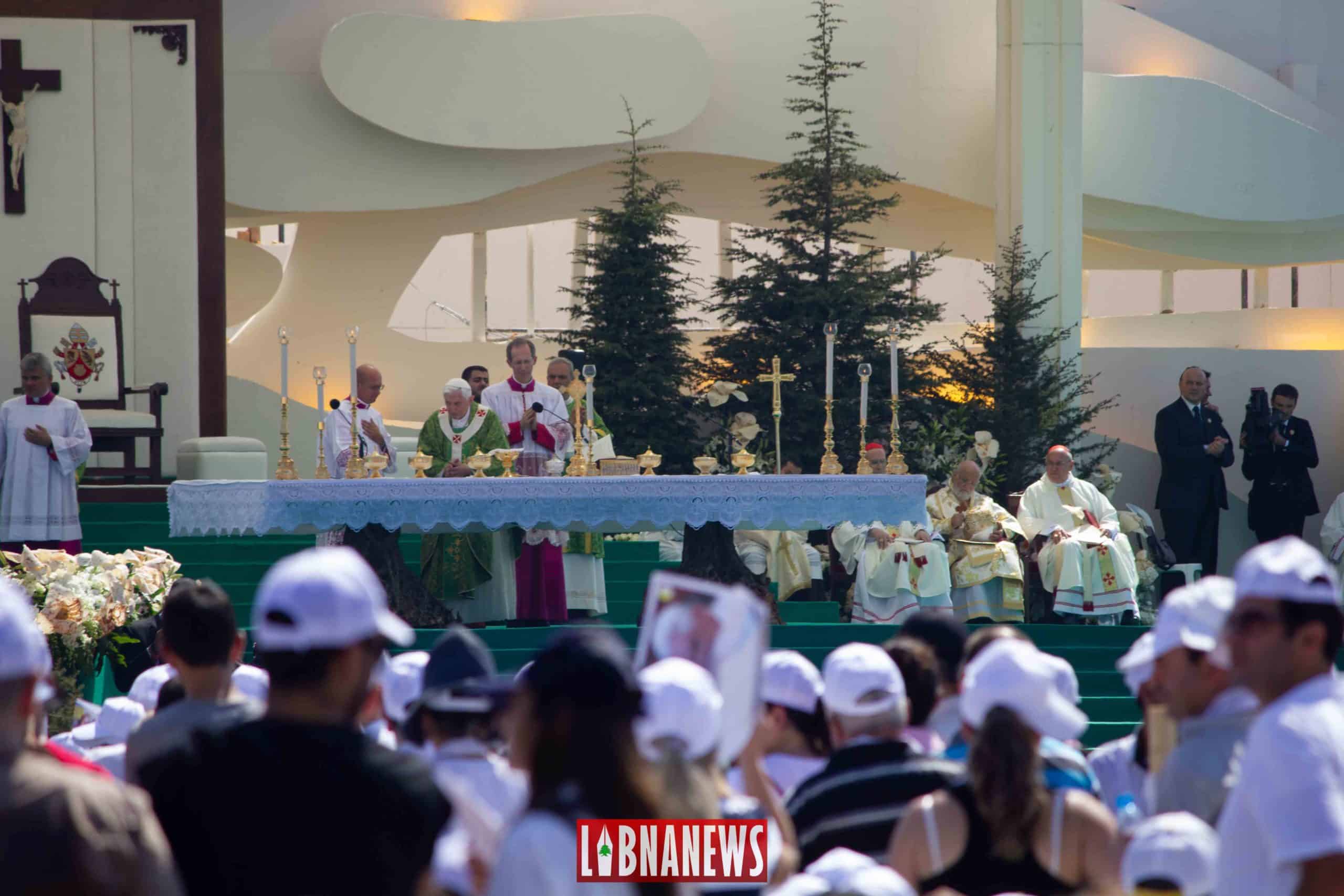 Ce dimanche 17 septembre 2012, le Pape Benoît XVI a donné rendez-vous à la population libanaise afin de célébrer une messe. Répondant à son appel, 350 000 personnes se sont déplacées, en immense majorité des chrétiens libanais, mais également des chrétiens de Syrie, de Jordanie, d’Irak et d’Egypte, ainsi que des personnes appartenant aux communautés musulmanes libanaises.