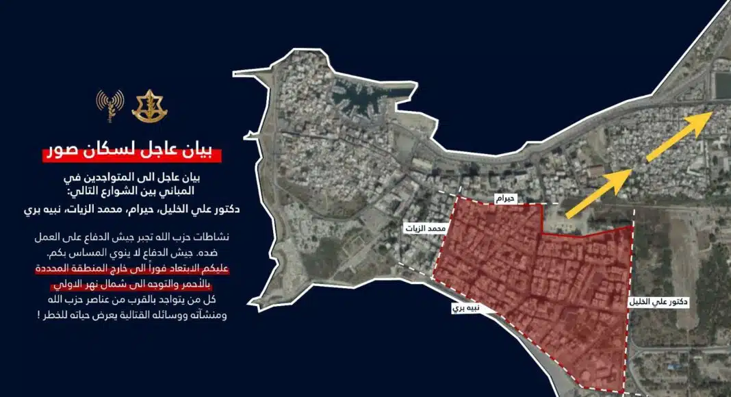 Les autorités israéliennes ont prévenu les résidents de certaines parties de Tyr de quitter immédiatement leurs domiciles, avec des avertissements diffusés par haut-parleurs et des appels téléphoniques. Selon l’armée israélienne, les cibles incluaient des dépôts d’armes et des sites de reconnaissance de la branche militaire du Hezbollah, y compris l’unité Aziz, responsable de la zone ouest du sud Liban.