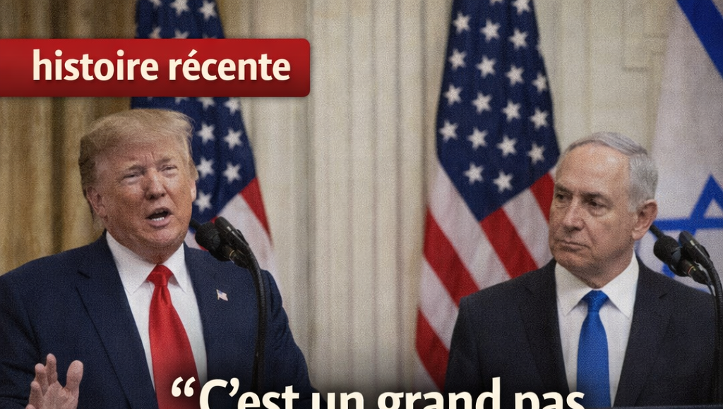 Le 28 janvier 2020, dans la salle Est de la Maison Blanche, le président américain Donald Trump présente officiellement son plan de paix pour le Moyen-Orient, baptisé « Peace to Prosperity », plus connu sous le nom de « Deal du siècle ». Aux côtés du Premier ministre israélien Benjamin Netanyahu, Trump détaille une vision qui propose une résolution du conflit israélo-palestinien par une reconnaissance accrue des revendications israéliennes, incluant l’annexion de colonies en Cisjordanie et un statut limité pour un État palestinien démilitarisé. Cette annonce, préparée en secret par une équipe dirigée par son gendre Jared Kushner, survient dans un contexte de tensions régionales exacerbées par l’assassinat du général iranien Qassem Soleimani trois semaines plus tôt, et marque un tournant diplomatique en marginalisant les Palestiniens, absents de la cérémonie. Le plan, étalé sur 181 pages, promet des investissements de 50 milliards de dollars pour l’économie palestinienne, mais il est immédiatement rejeté par l’Autorité palestinienne comme une capitulation unilatérale.