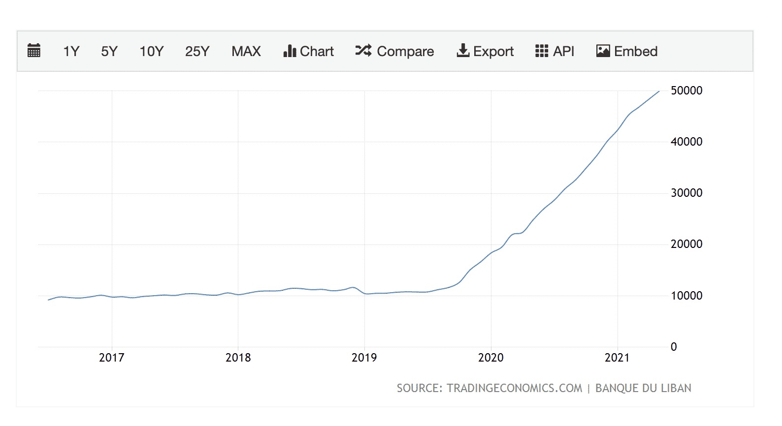 Un excès de création monétaire par rapport à une absence de création de richesse équivalente amène à une inflation galopante, ce qui est actuellement le cas. Il s’agit du problème du Liban depuis ces 30 dernières années. Il s’agissait d’une économie rentière sans création effective de richesse. La bulle monétaire mise en place par la Banque du Liban pour attirer les capitaux étrangers a finalement éclaté vers le début de 2019.