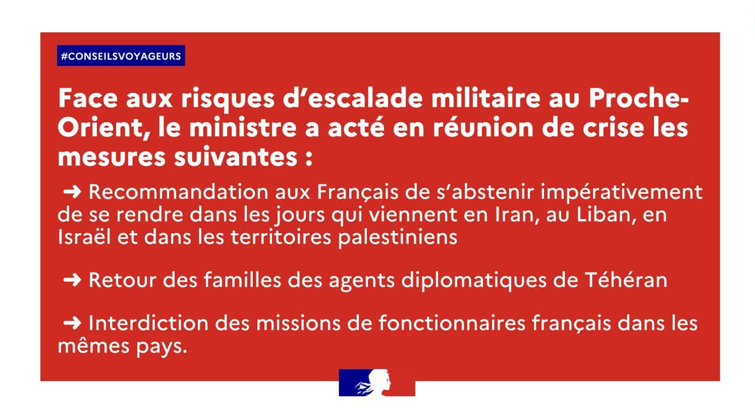 Cette mesure fait suite à l’escalade des tensions entre l’Iran et Israël, après une série d’attaques aériennes israéliennes visant des cibles iraniennes en Syrie. L’Iran a menacé de représailles, ce qui a conduit la France à émettre cette recommandation de sécurité préventive.