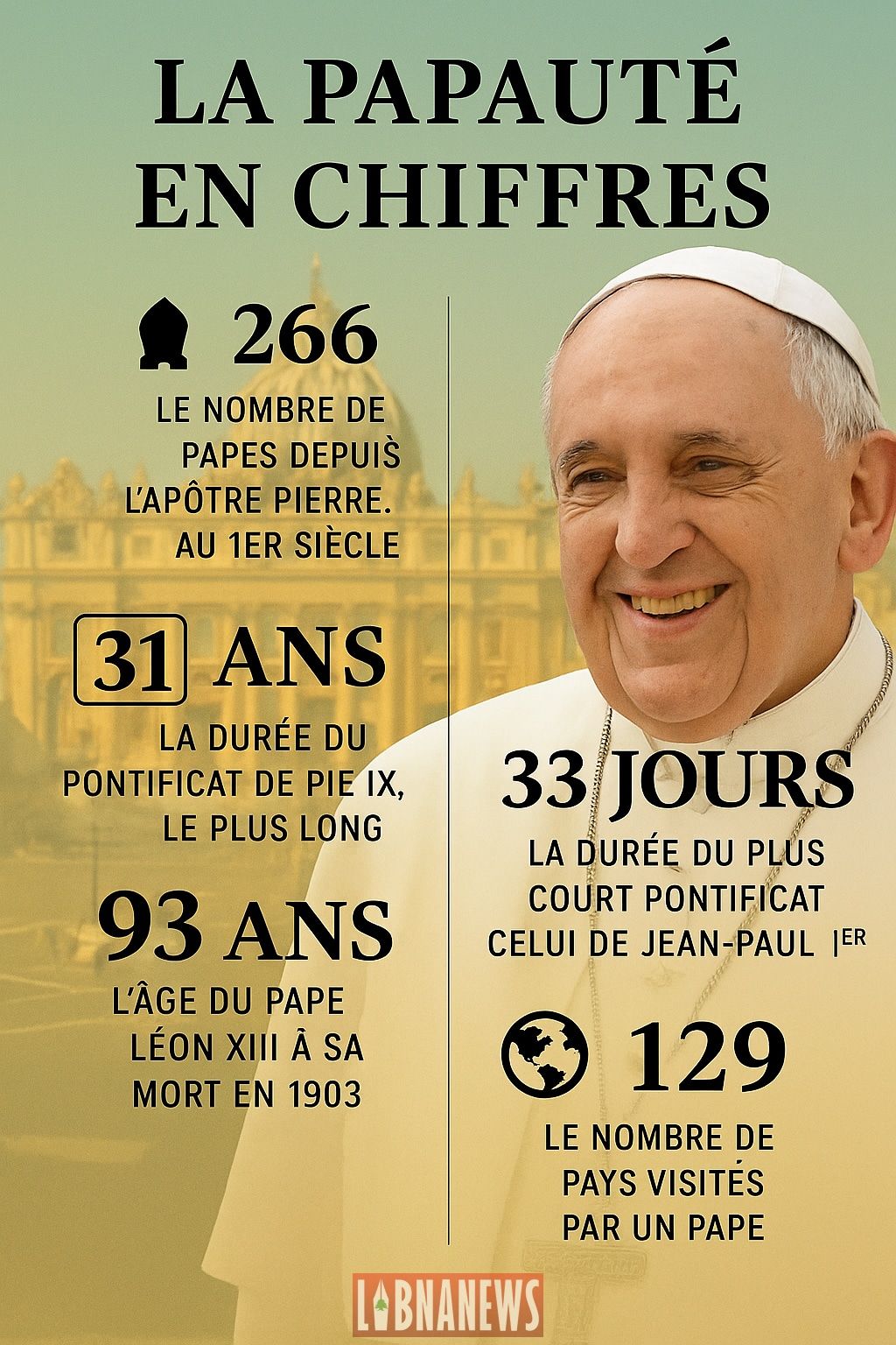 Alors que le conclave de 2025 se prépare à désigner le 267e pape de l’histoire catholique, les chiffres impressionnants qui jalonnent l’histoire du Saint-Siège permettent de mesurer l’ampleur, la longévité et la complexité de l’institution pontificale. De la succession apostolique à la démographie mondiale, des durées de pontificats aux âges records, ces données offrent un aperçu précis de ce qu’est la papauté dans sa réalité historique et contemporaine.