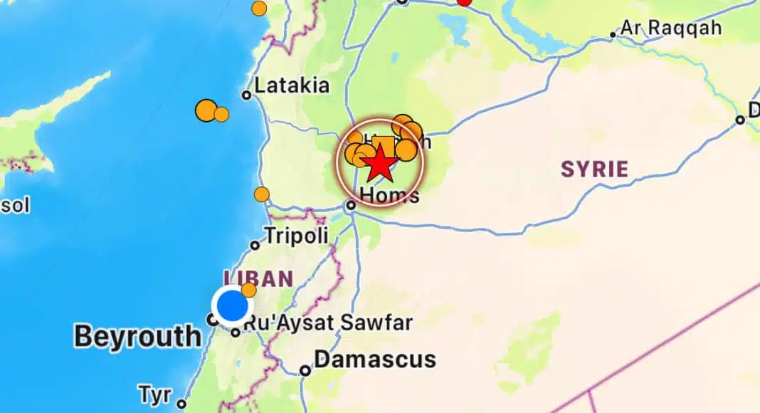 L’épicentre du séisme aurait été localisé à Hama en Syrie à 13 heures 15, à environ 7 km de la surface. Il aurait été estimé à 5.2 sur l’échelle de richter, selon les données dont on dispose actuellement.