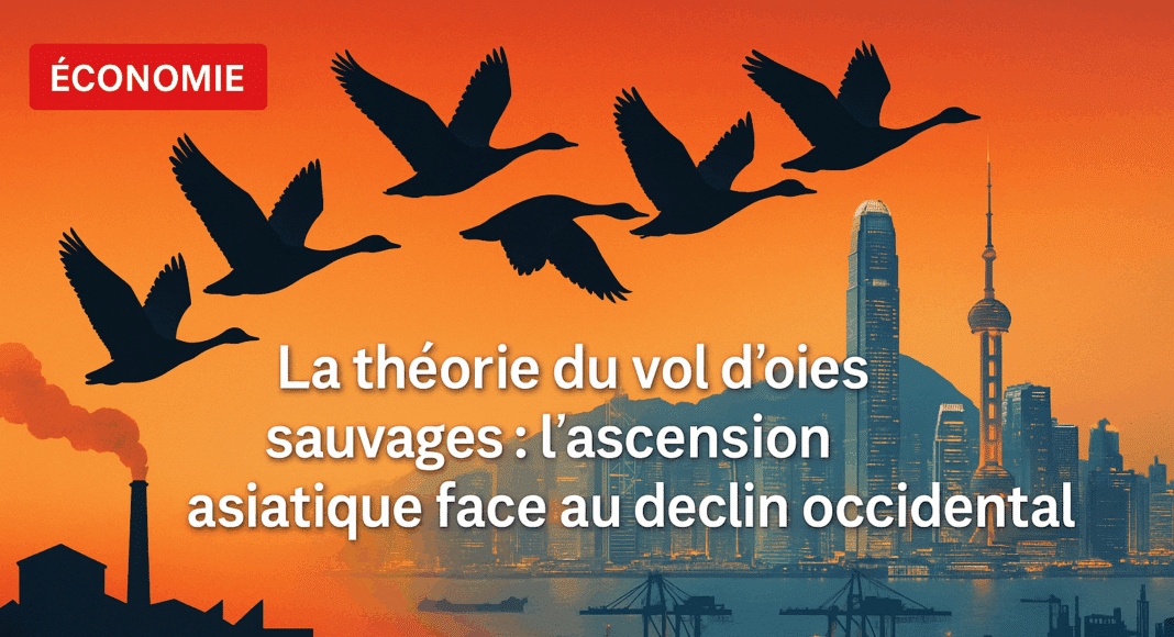 La théorie du vol d’oies sauvages, formulée par l’économiste japonais Kaname Akamatsu dans les années 1930, éclaire le processus d’industrialisation séquentielle des pays d’Asie de l’Est et du Sud-Est, qui a bouleversé l’équilibre économique mondial. Publiée en 1937 dans le Journal of Developing Economies, elle décrit un cycle en trois étapes : importation de biens manufacturés, développement d’une production domestique, puis exportation de ces biens. Une fois un certain niveau de maturité économique atteint, le pays transfère les industries à faible valeur ajoutée, comme le textile ou l’assemblage, à des nations moins avancées, pour se concentrer sur des secteurs à haute intensité technologique, tels que l’électronique, les semi-conducteurs ou l’intelligence artificielle. Graphiquement, ces cycles forment des courbes en cloche, évoquant la formation en V des oies migratrices, d’où le nom de la théorie. Le Japon, pionnier dès l’ère Meiji (1868-1912), a servi de première oie de tête, suivi par les quatre dragons (Corée du Sud, Hong Kong, Singapour, Taïwan) dans les années 1960, puis par les nouveaux tigres (Indonésie, Malaisie, Philippines, Thaïlande, Vietnam) et la Chine à partir des années 1980. Le modèle repose sur plusieurs mécanismes clés. Premièrement, les avantages comparatifs dynamiques permettent à un pays de débuter avec des industries intensives en main-d’œuvre, exploitant des salaires bas. Par exemple, le salaire horaire moyen dans l’industrie textile chinoise était de 0,50 dollar en 1990, contre 15 dollars aux États-Unis. Deuxièmement, le transfert industriel est facilité par des investissements directs étrangers (IDE), qui ont atteint 315 milliards de dollars en Asie de l’Est et du Pacifique en 2019, soit 22 % des flux mondiaux, contre 10 % en 1990, selon la Banque mondiale. Troisièmement, l’intégration régionale, renforcée par des accords comme la zone de libre-échange de l’ASEAN (AFTA) ou l’accord Chine-ASEAN (CAFTA), a stimulé les échanges intra-asiatiques, qui représentaient 57 % du commerce total de l’ASEAN en 2020. Ce cadre a permis à l’Asie de capter une part croissante de la production et du commerce mondiaux, tandis que l’Occident voit sa compétitivité s’éroder face à cette dynamique.