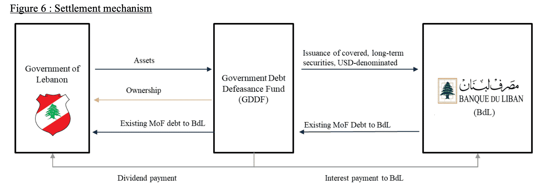 Le plan présenté par l’Association des Banques du Liban, qui se présente comme garante des dépôts de 3 millions de personnes, prévoit que l’état se défasse de près de l’état 40 milliards de dollars de biens publics, comme les entreprises publiques ou encore obtenir des concessions et le droit d’exploiter les biens maritimes, à la faveur d’un fonds qui serait gérée par la Banque du Liban. La rémunération de ce fonds servira alors à annuler au final, la portion de dette publique interne détenue par la BDL. Cette proposition avait déjà été formulée dans le rapport semestriel du département de recherche économique de la Banque Audi.