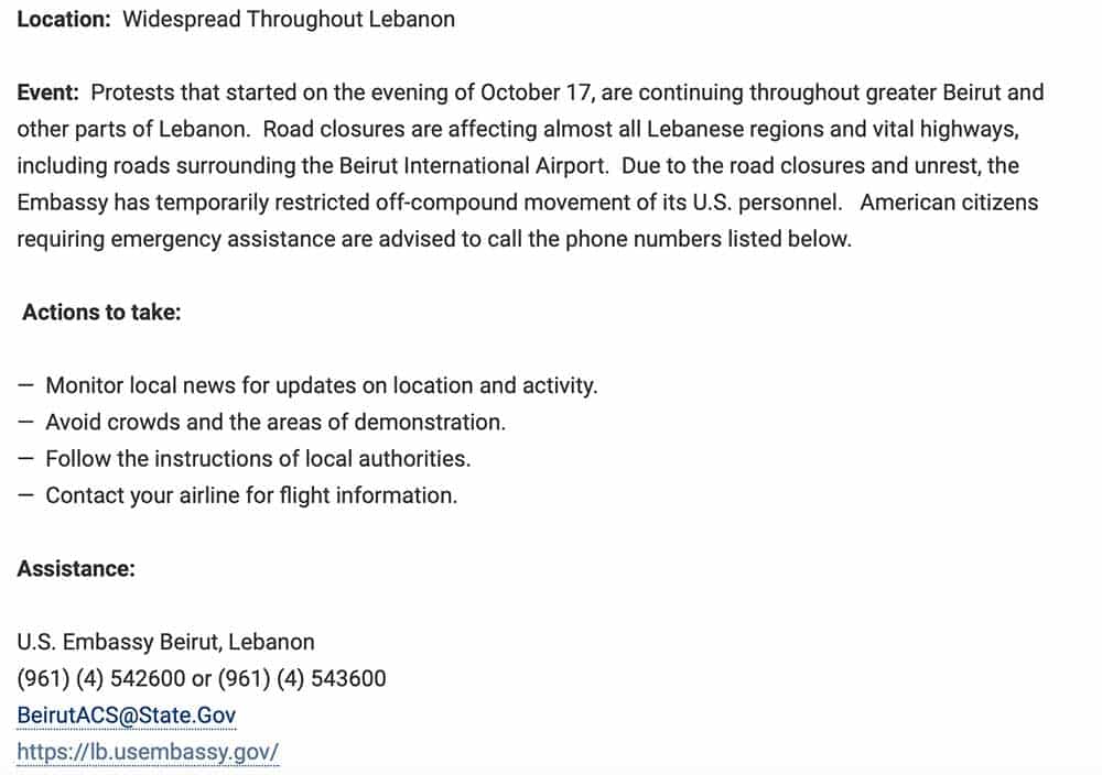 Ce communiqué fait suite déjà à l’appel à la prudence du consulat français au Liban.