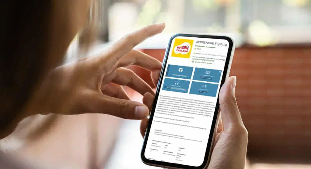 L’objectif de cette application est d’aider les enseignantes et les enseignants à situer leur niveau en langue française. Téléchargeable gratuitement sur smartphone (Android et Apple), APPRENDRE EV@LANG propose à l’utilisateur un parcours d’entraînement individualisé. Les enseignants peuvent télécharger et utiliser directement l’application en modes « en ligne » et « hors connexion ». Elle leur permettra de mieux situer leur niveau de maitrise de la langue française, et d’identifier là où ils disposent de marges de progression.