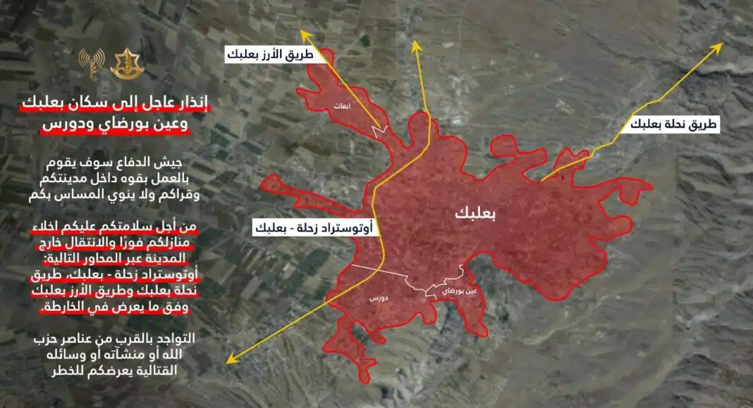 Les tensions dans le sud du Liban atteignent des niveaux critiques, avec des avertissements israéliens adressés aux habitants de Baalbeck et des villages voisins dont Douris ou le mausolé de lâère Ayyoubite a déjà été endommagé par une frappe israélienne. Lâarmée israélienne a appelé la population locale à évacuer la zone en prévision dâopérations militaires imminentes. La ville de Baalbeck, célèbre pour ses ruines romaines inscrites au patrimoine mondial de lâUNESCO, est désormais exposée aux risques de bombardements, soulevant des inquiétudes quant à la préservation de ce patrimoine unique.