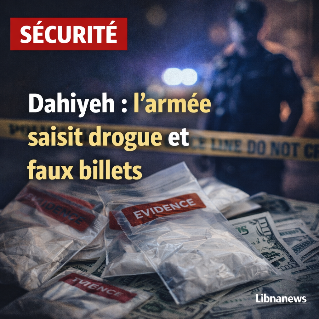 Dans une opération menée par une patrouille de la direction des renseignements de l’armée libanaise, une shqa (appartement) située dans le quartier de Lilaki, au cœur de la banlieue sud de Beyrouth, a été perquisitionnée le 16 février 2026. Cette intervention, annoncée par un communiqué officiel de la direction de l’orientation de l’armée, visait un lieu utilisé pour le stockage de stupéfiants en vue de leur écoulement sur le marché local. Les forces ont saisi une importante quantité de drogue, accompagnée de matières premières destinées à leur fabrication, ainsi qu’un montant en devises falsifiées. Les biens confisqués ont été remis aux autorités compétentes, et une enquête a été ouverte sous la supervision du judiciary approprié.