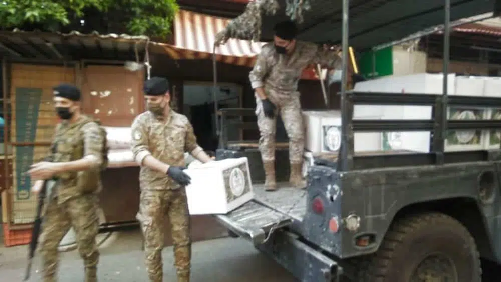 L’Armée Libanaise a poursuivi sa campagne de distribution d’une aide alimentaire aux personnes les plus vulnérables au Nord du Liban et plus particulièrement à Tripoli dans les quartiers de Bad Tebbaneh, Jabal Moshen, Al Mina, Bab Al-Raml, Al-Qobba et Al-Zahriyah, indique une dépêche de l’Agence Nationale d’Information (ANI).