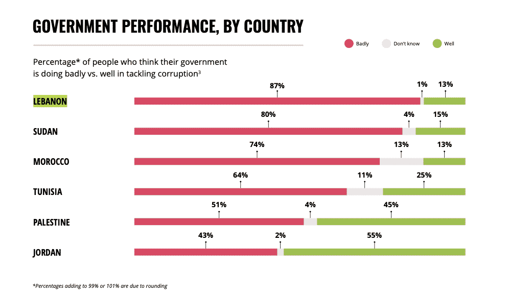 68% de la population estimerait ainsi que la corruption s’est aggravée depuis un an seulement, seul le Soudan faisant pire que le Pays des Cèdres.