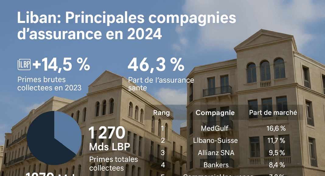 Le classement des compagnies libanaises d’assurance montre une concentration du marché autour de quelques grands acteurs. En 2023, MedGulf arrive en tête avec 210,4 milliards LBP de primes, suivie par Libano-Suisse (148,9 milliards) et Allianz SNA (120,5 milliards).