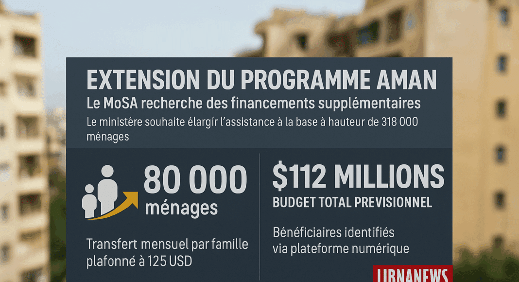 Le ministère des Affaires sociales (MoSA) du Liban a entamé de nouvelles démarches auprès de bailleurs de fonds internationaux pour garantir la pérennité du programme AMAN au-delà du second semestre 2025. Lancé en 2021 avec l’appui de la Banque mondiale, AMAN est aujourd’hui le plus important dispositif d’assistance financière directe conditionnelle au Liban. Il a permis, en 2024, de verser des aides mensuelles à 158 000 ménages identifiés comme extrêmement pauvres à travers une plateforme numérique de ciblage social.