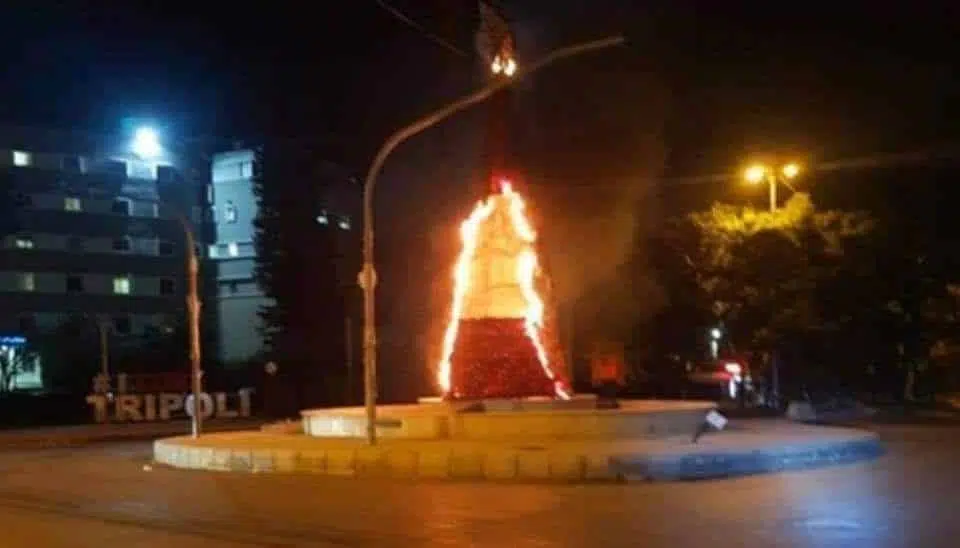 Le Sapin de Noël mis en place par les manifestants a été incendié durant la nuit, selon certaines sources, par des fondamentalistes.