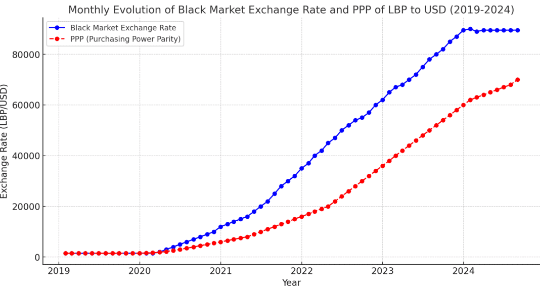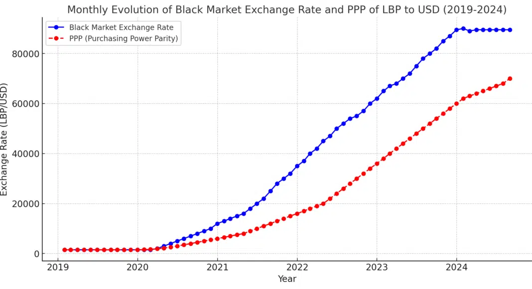 L’écart croissant entre la parité de pouvoir d’achat et la parité de la livre libanaise sur le marché noir