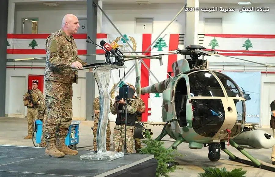 Les Etats-Unis ont offert à l’armée libanaise 6 hélicoptères légers d’attaque de type MD 530F+ au cours d’une cérémonie qui s’est déroulée hier à la base aérienne de Hamat. Ces 6 hélicoptères d’attaque s’ajoutent ainsi aux hélicoptères d’attaque Gazelle de fabrication française opérationnels au sein de l’institution militaire depuis plusieurs décennies.