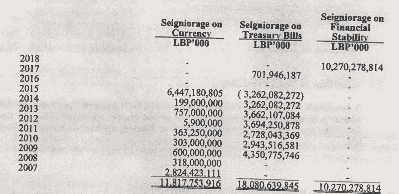 Face à cette situation, le gouverneur de la Banque du Liban aurait abusé de ses prérogatives, inventant jusqu’à 6.4 milliards de dollars de profits liés aux profits fiduciaires, c’est à dire aux différences entre la valeur nominale de billets mis en circulation et le coût de fabrication de ces derniers, allant jusqu’à les estimer de manière aléatoire au nom de la stabilité financière.