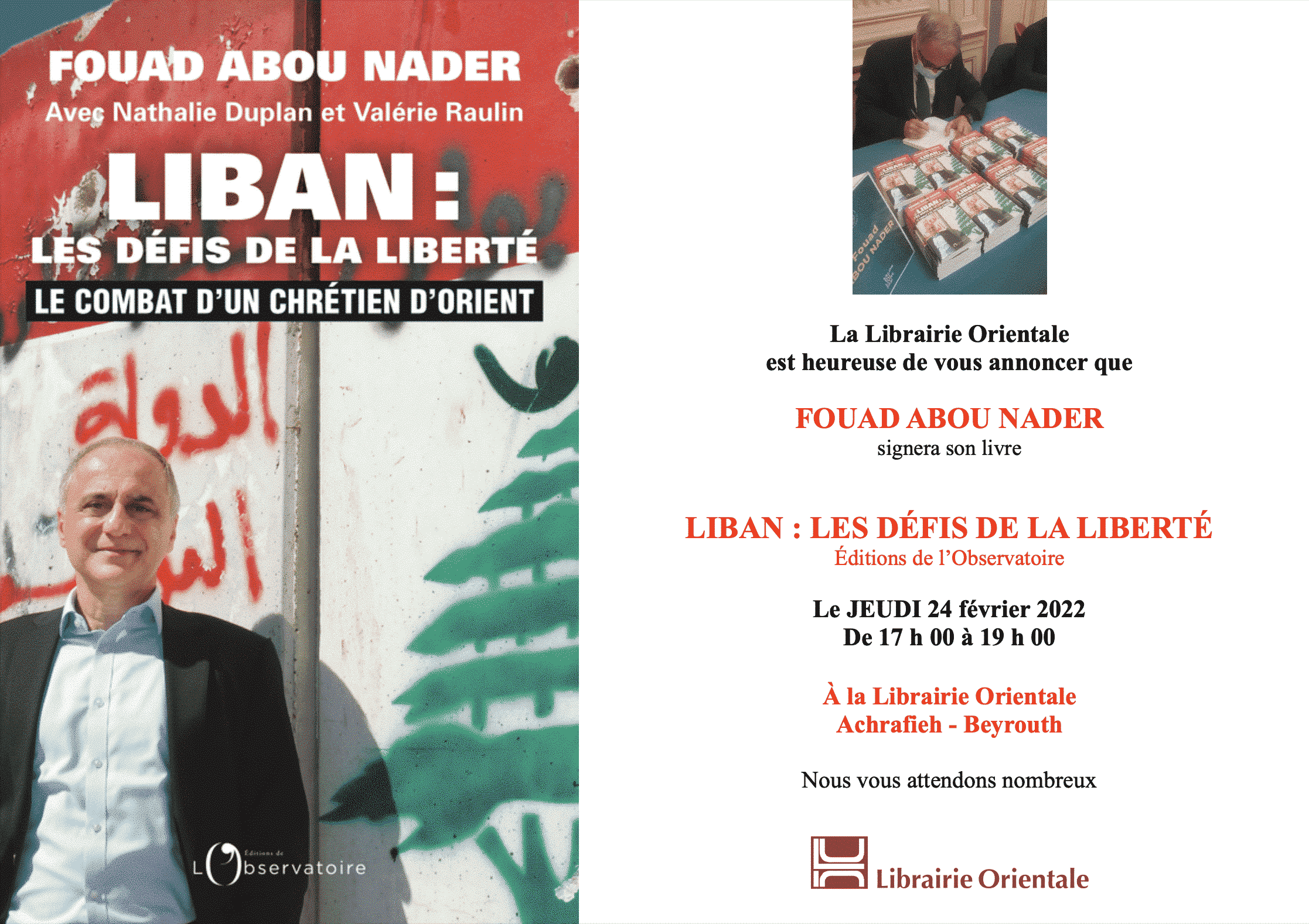 Ce 24 février, à la Librairie Orientale, le Dr Fouad Abou Nader signe son livre Liban : les défis de la liberté (Éditions de l’Observatoire). L’occasion de revenir sur les solutions que le président de l’ONG Nawraj et cofondateur des Forces libanaises propose pour sortir le pays de la situation dramatique dans laquelle il se trouve.