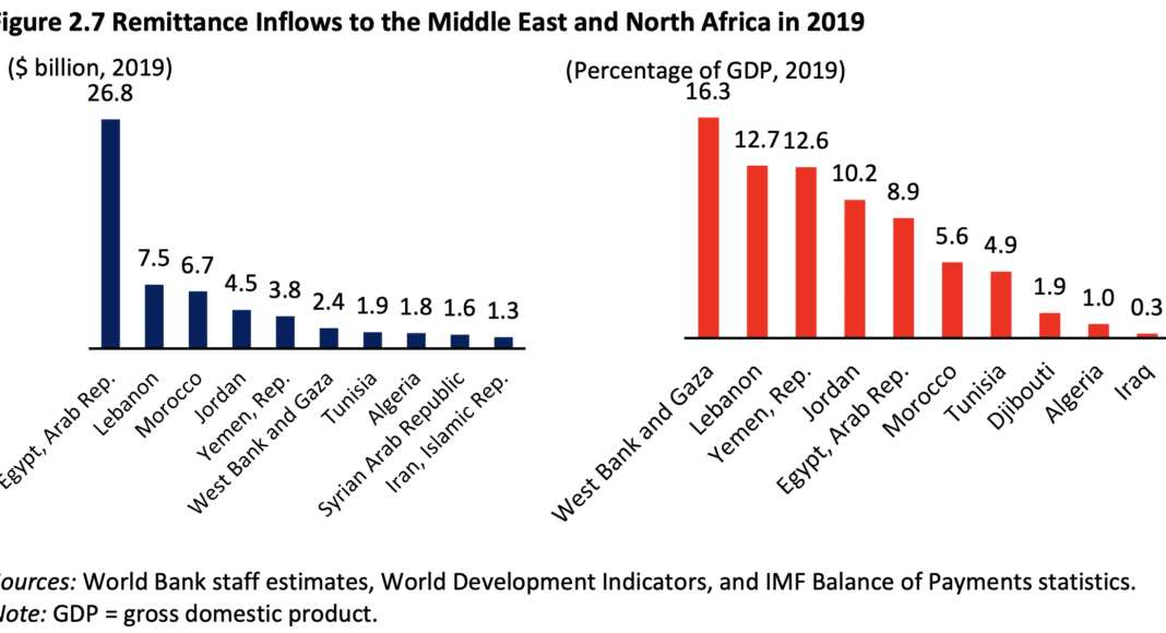 COVID-19-Crisis-Through-a-Migration-LensSur le plan régional, les transferts de fonds devraient se ralentir de 19.6% et s’établir à 47 milliards de dollars en raison de la crise internationale induite par le coronavirus et son impact sur la consommation de pétrole.