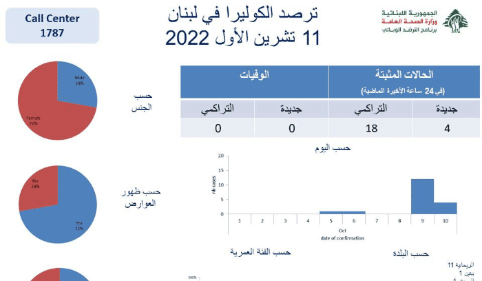 Le ministère de la santé indique que 18 personnes ont été contaminées par le choléra depuis l’apparition d’un premier cas la semaine dernière. Au cours des 24 dernières heures, 4 nouvelles personnes ont été diagnostiquées positives, précise le ministère.