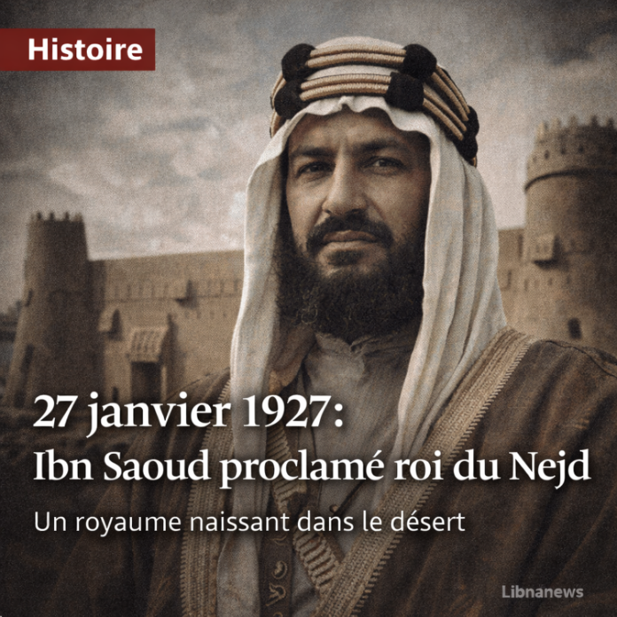 Le 27 janvier 1927, Abdulaziz Ibn Saoud est proclamé roi du Nejd à Riyad, au palais Al Masmak. Après la conquête du Hedjaz, cette étape accélère l’unification d’un royaume naissant et prépare la fondation de l’Arabie saoudite en 1932. Entre wahhabisme, Ikhwan et tractations britanniques, l’équilibre régional bascule.