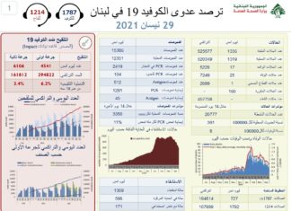 Le Liban déplore 25 décès suite à des complications induites par le Covid19 et dénombre 1 336 nouveaux cas sur une période de 24...