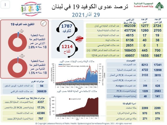 Lebanese authorities indicate that 40 people have died from complications induced by covid19 within 24 hours. 1,277 cases were also diagnosed.