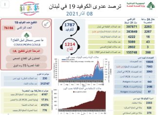 Les autorités libanaises indiquent que 43 personnes sont décédées suite à des complications induites par le Coronavirus COVID19 ces dernières 24 heures. 2 283...