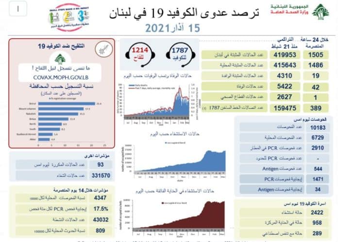 Liban/Coronavirus: 46 décès ce dimanche
