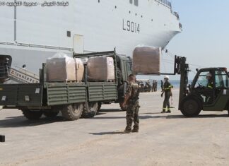 le navire français le PHA Le Tonnerre est arrivé aux port de Beyrouth, avec à son bord une cargaison d'aide humanitaire.