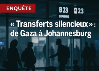 Des familles palestiniennes quittent Gaza via Karem Abu Salem et l’aéroport de Ramon avant d’atterrir à Johannesburg, sans tampon de sortie sur leurs passeports. Coûts élevés, rôle d’Al-Majd Europa, exemption humanitaire sud-africaine et enquête annoncée alimentent la polémique entre évacuation d’urgence et accusation de « transferts silencieux ».