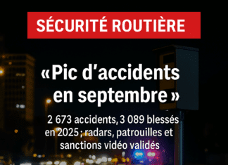 Les FSI recensent 2 673 accidents et 3 089 blessés au 25 octobre 2025, avec un pic inédit en septembre (512 accidents). Malgré une mortalité en léger recul (312), les jeunes et les motocyclistes restent les plus touchés. La Commission nationale valide radars, patrouilles renforcées et sanctions vidéo pour inverser la tendance.