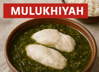 La Mulukhiyah est un ragoût velouté de feuilles de jute mijotées dans un bouillon citronné, agrémenté de blancs de poulet pochés. Servie avec du riz, elle allie texture onctueuse et parfum acidulé, relevée par la coriandre et le piment d’Alep. Simple à réaliser, c’est un classique à redécouvrir.