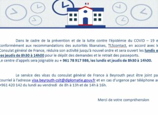 L'Ambassade de France au Liban a annoncé hier, la réduction de ses activités, conformément aux recommandations des autorités libanaises. Ainsi, le Consulat Général de...
