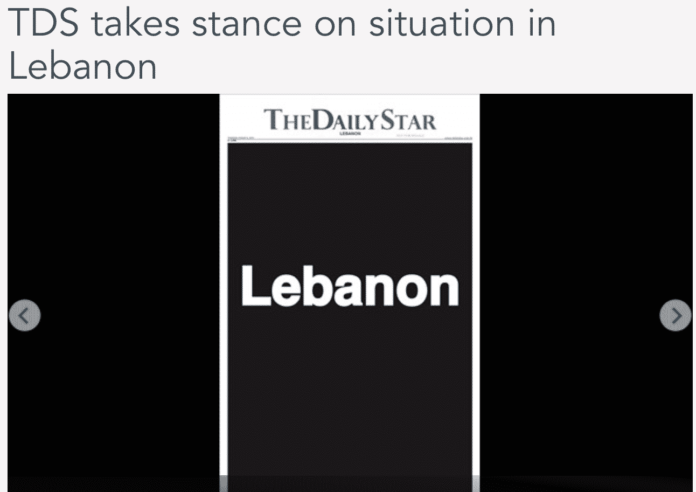 Le quotidien Anglophone Libanais, The Daily Star a habillé de noir la Une de son journal imprimé et ses publications en ligne pour protester...