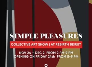 L'exposition d'art collective « SIMPLE PLEASURES » aura lieu du 24 Novembre au 2 Décembre 2023, de 14h à 19h à l’espace Rebirth Beirut,...