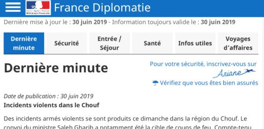L’Ambassade de France au Liban appelle les français à éviter le Chouf