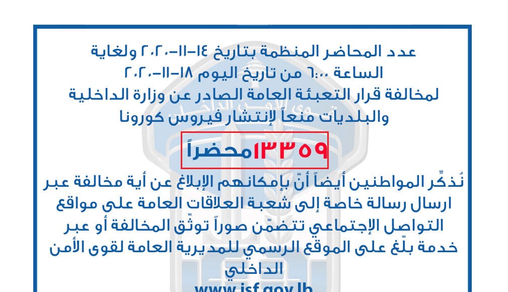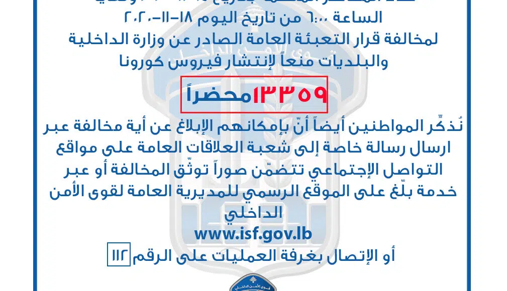 Les autorités libanaises ont mis en place dès ce vendredi 14 novembre, un nouveau confinement général de la population, cela jusqu’au 30 novembre avec pour objectif de limiter la pandémie du coronavirus COVID-19 en raison de la saturation des infrastructures hospitalières du Pays.