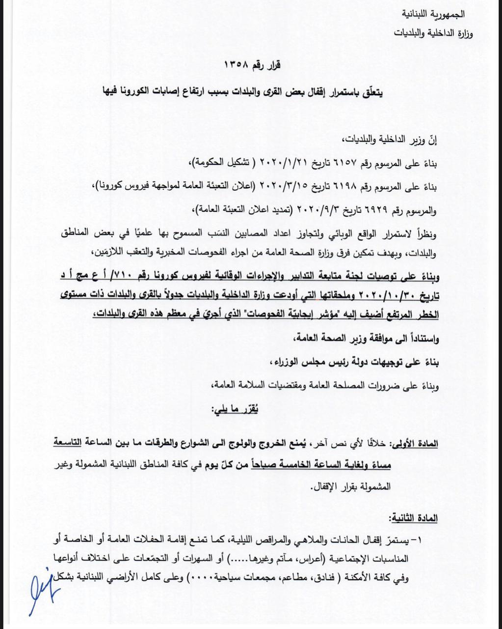 Le ministère de l’intérieur semble ainsi continuer à souhaiter recourir à des mesures de quarantaine locale et non à celles impliquant un confinement total du pays comme préconisé par les autorités sanitaires, comme le ministère de la santé ou encore le responsable de la commission parlementaire de la santé publique Assem Araji.
