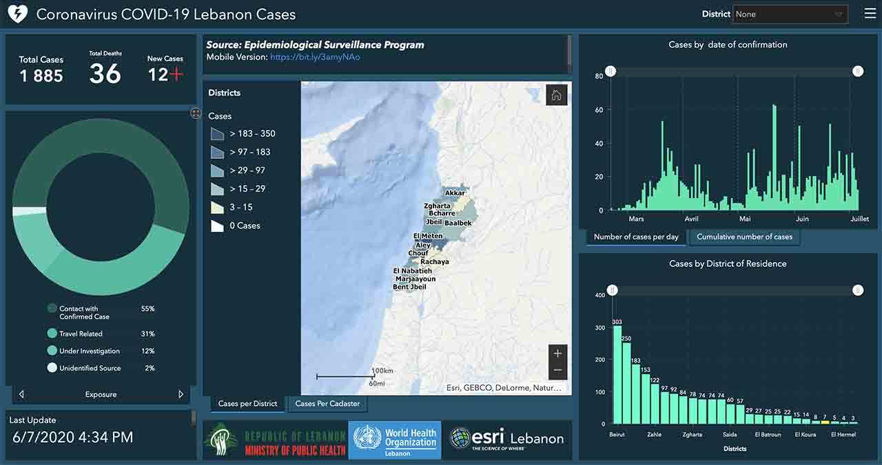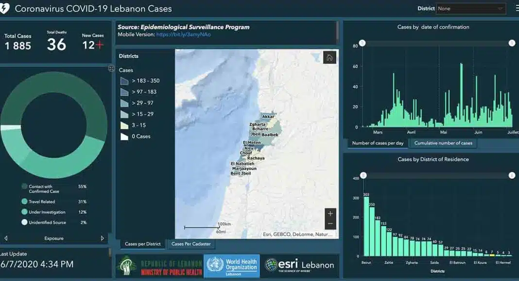 Parmi les quartiers touchés, Beyrouth avec 2 nouveaux cas ou encore Baabda avec 5 nouveaux cas figurent toujours en haut du tableau.