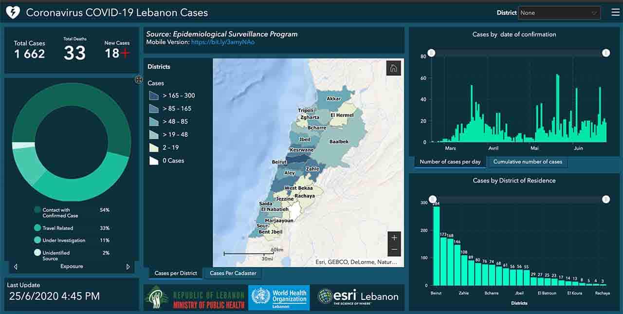 Le ministère de la santé annonce que 18 personnes ont été contaminées ces dernières 24 heures par le coronavirus COVID19, portant à 1662 personnes, le nombre total de personnes infectées depuis l’apparition de la maladie au Liban, le 21 février dernier.