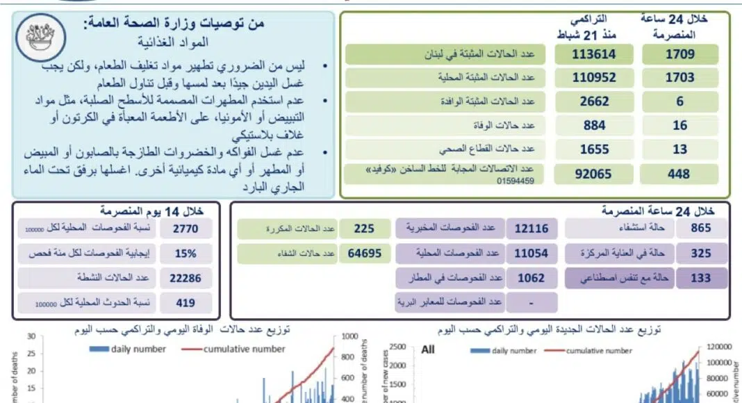 Au total, 113 655 personnes ont été contaminées depuis le 21 février 2020, date de la découverte d’un premier cas au Liban, passant donc du seuil des 100 000 cas depuis ce vendredi 13 novembre