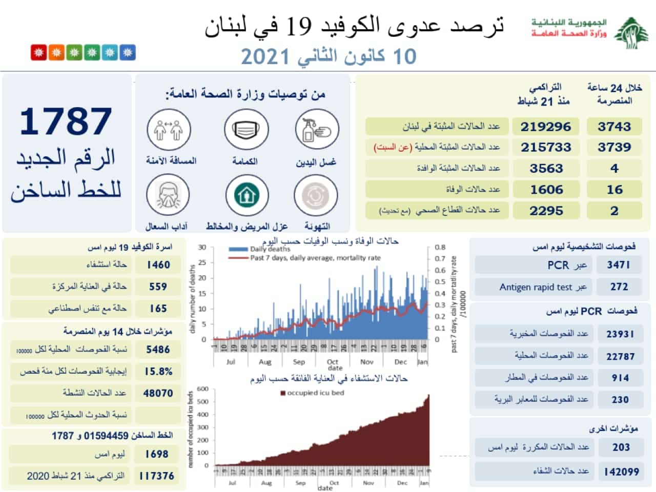 La publication de ces chiffres intervient après 2 jours de hausse importante et un nombre de cas quotidien dépassant le seuil des 5000 cas, une hausse considérée comme étant l’une des plus importantes au Monde, souligne le président du conseil de l’ordre des médecins, Charaf Abou Charaf qui appelle les autorités libanaises a instauré un bouclage strict du Pays des Cèdres.