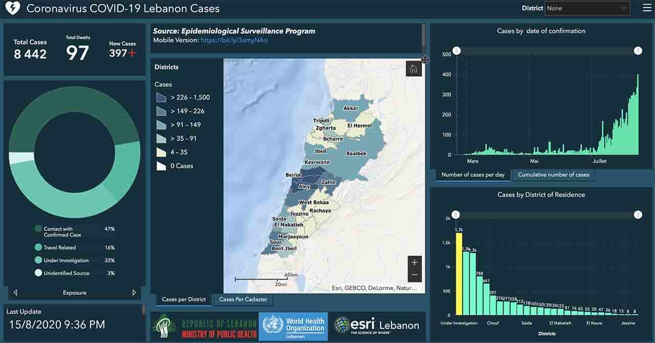 2650 personnes sont guéries et on dénombre toujours 5695 personnes atteintes par le virus, soit de 67% des cas. Le nombre de personnes atteintes connait donc une nouvelle hausse importante, démontrant que l’épidémie continue à s’accélérer au Liban.