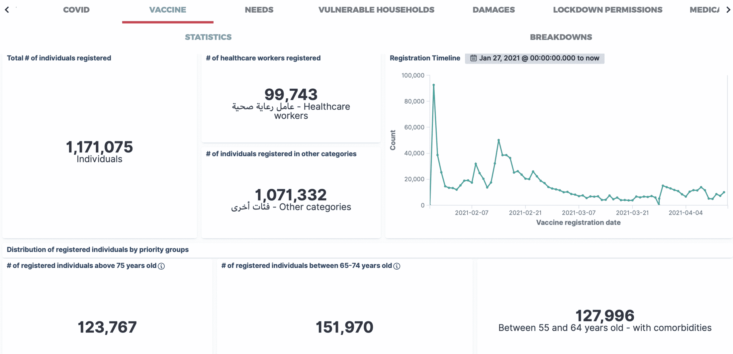 Pour l’heure, 1 171 075 personnes sont enregistrées auprès du programme officiel en vue d’obtenir le précieux vaccins contre le covid depuis son ouverture, le 27 janvier 2021.